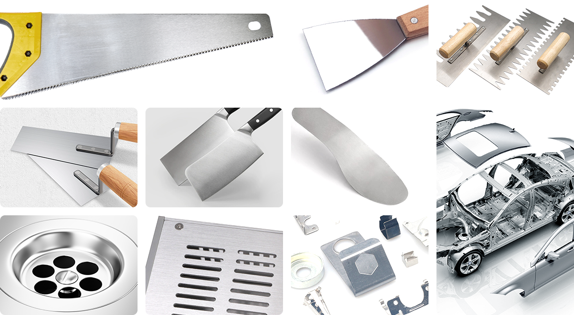 Saw blades, putty knives, trowels, bricklaying knives, knives, steel midsoles, auto parts, small hardware accessories, etc.,