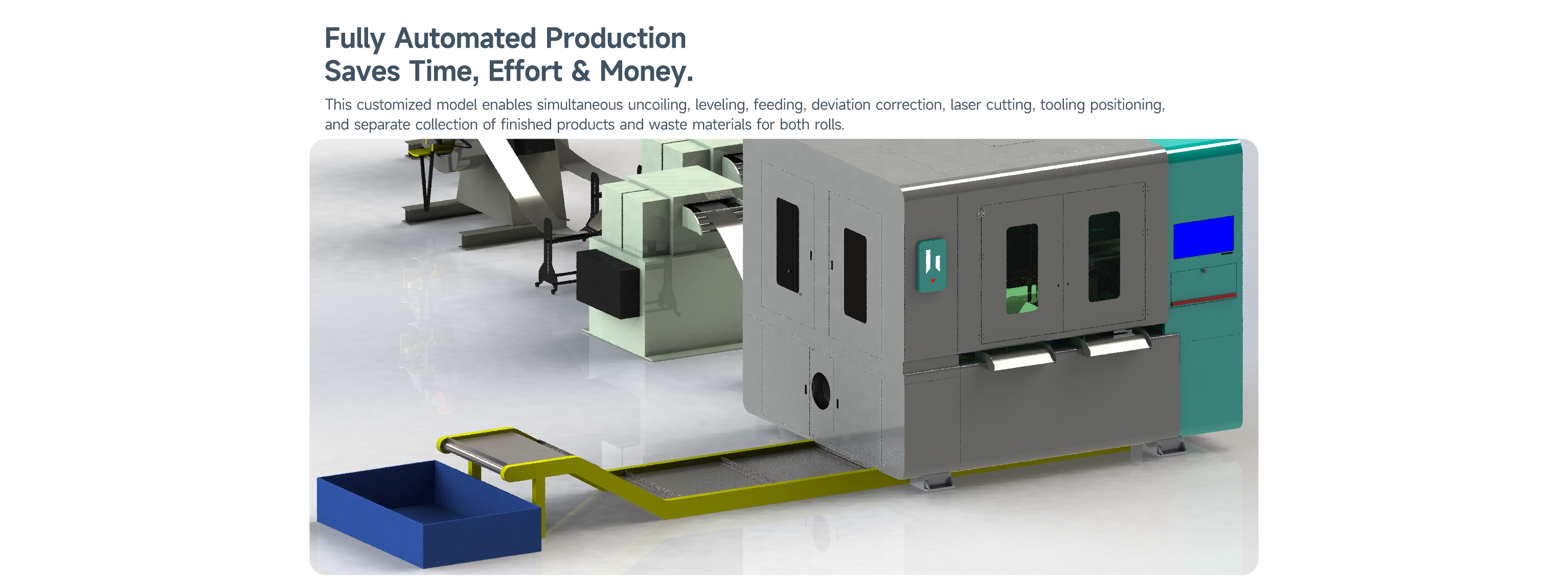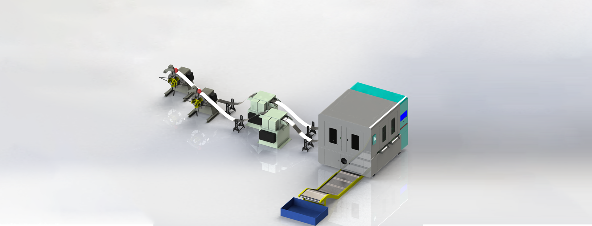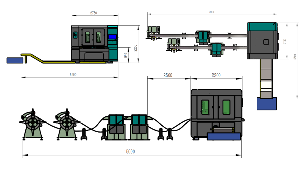 Optional uncoiling & leveling combined rack or separate uncoiling and leveling mechanism. Material width ≤ 500mm, load capacity 3T; Optional 7-roller or 9-roller leveling mechanism, leveling thickness ≤ 3mm.