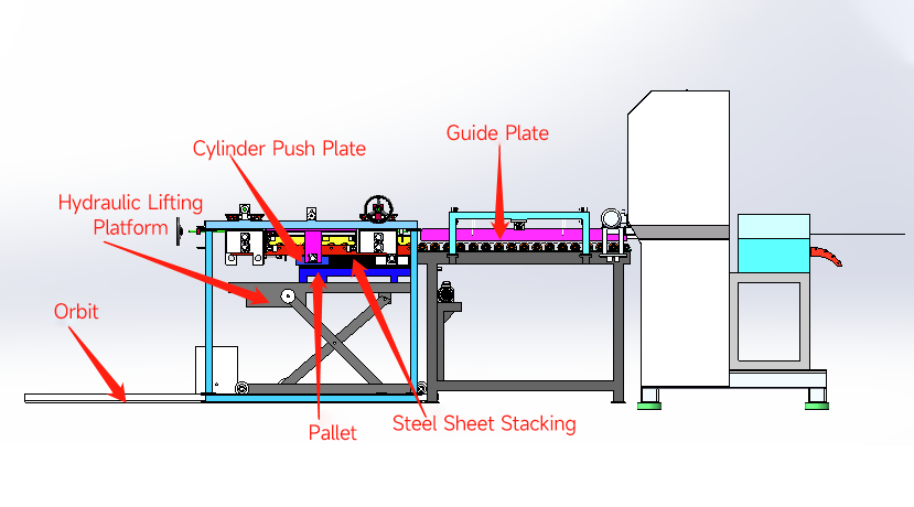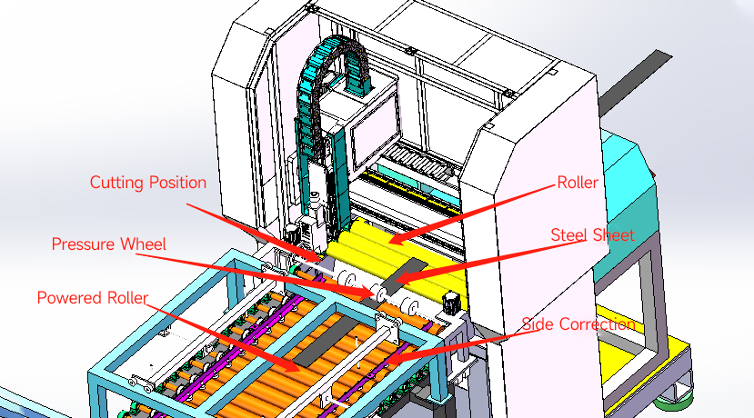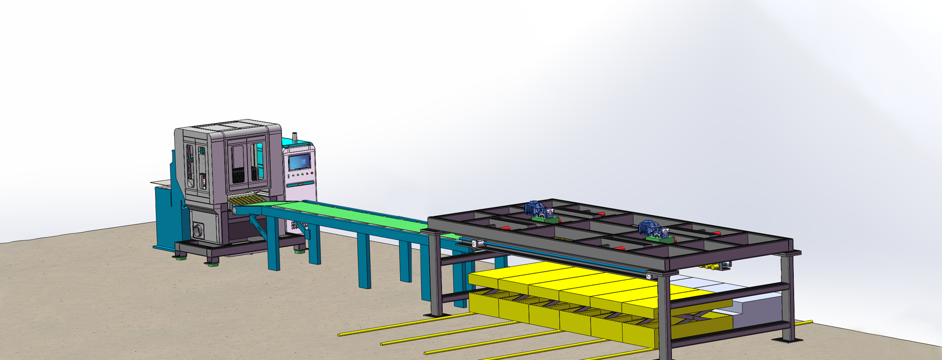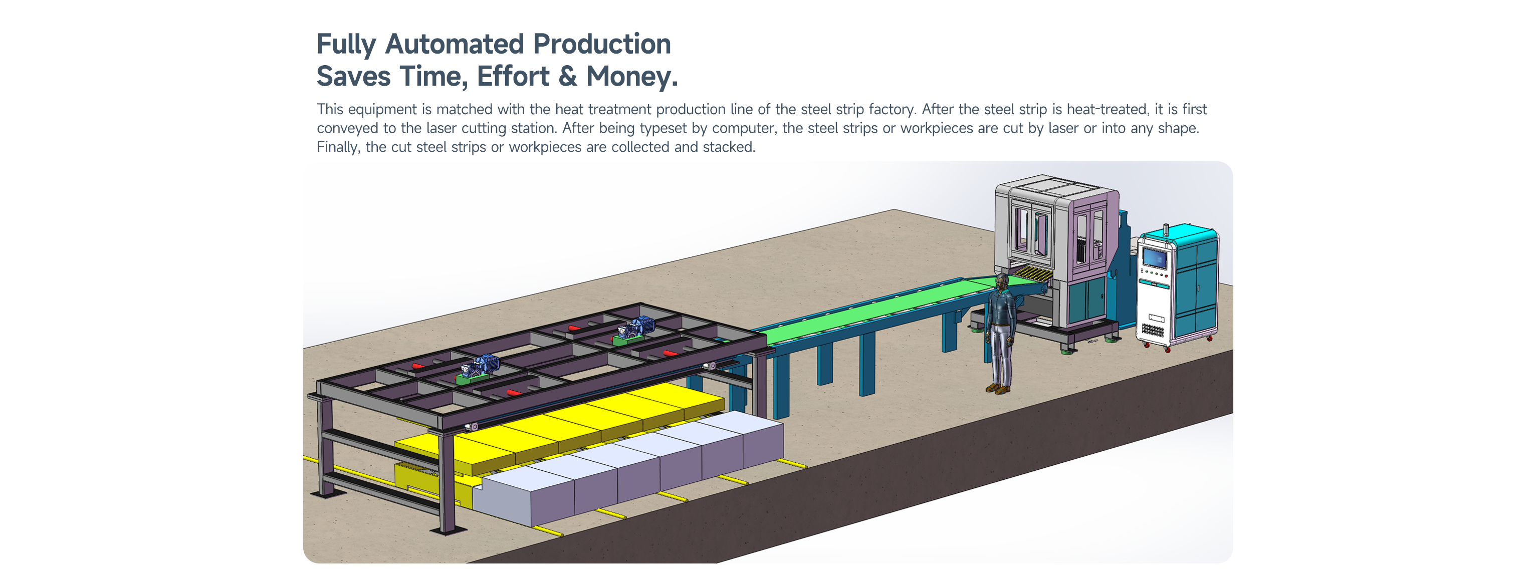 Steel strip heat treatment --- conveying and buffer zone --- steel strip feeding mechanism --- correction mechanism --- laser cutting mechanism --- workpiece conveying mechanism --- receiving and stacking mechanism.