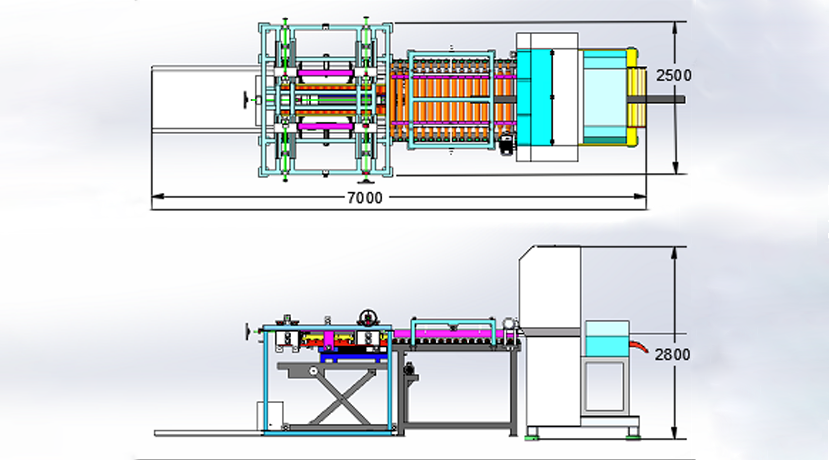The heat treatment line has maximum speed of 2m/min. The strip steel runs continuously, being transported from 1.5 meters height to a 15 meters away position on the ground for laser cutting.